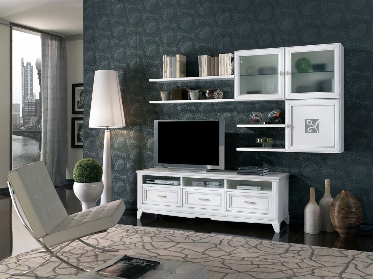 centrale e zoccolo chiuso finitura bianco particolari foglia argento.